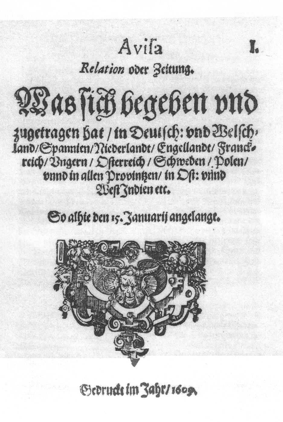 Titelseite des Aviso 1609 (Niedersächsische Landesbibl. Hannover)